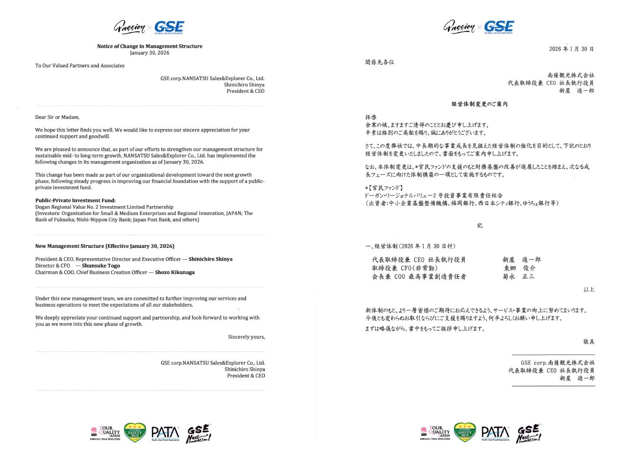 この度、GSE corp.南薩観光株式会社 (本社 鹿児島県南九州市 代表取締役社長 菊永正三 …