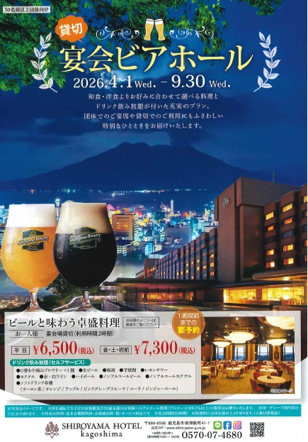 【夏宴会企画プランのご案内~09/30】SHIROYAMA HOTEL kagoshima 予約受付開始しました。