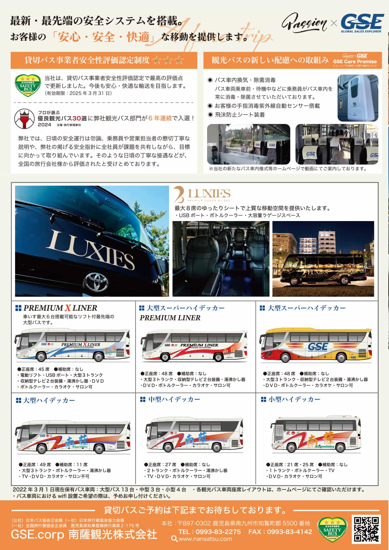 GSE corp. 南薩観光のホームページをご利用いただきありがとうございます。リニューアルした新…