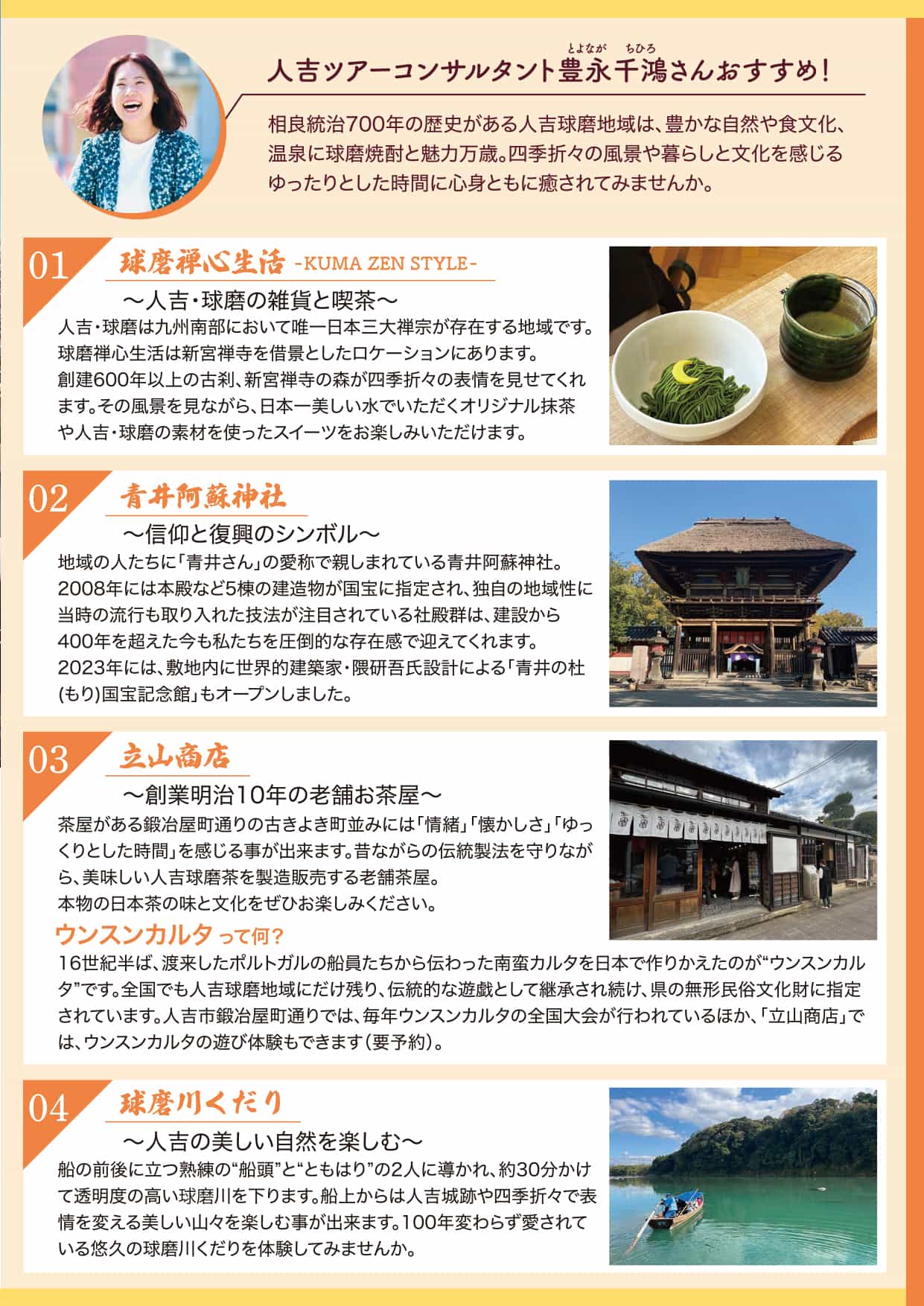 清流山水花あゆの里や人吉ツアーコンサルタント豊永千鴻さんおすすめの観光・体験など人吉の魅力をたっぷりお伝えします!Youtube動画と合わせてぜひご覧ください♪