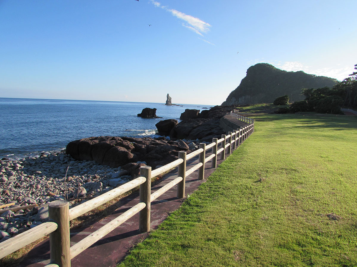 Hinokami Park is located along the coast overlooking the East China Sea, at the tip of a cape jutting out into the East China Sea, where [mountain Yukihiko], appearing in Kojiki dropped in. The Tategami rock of 42m in height to rise off a pride by Satsuma Peninsula's leading scenery is mysterious beauty.