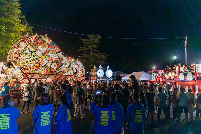 高さ5m、縦横4mの勇壮な武者絵が描かれた扇形のねぷた大小8基が、夜のちらんまち商店街を練り歩きます。